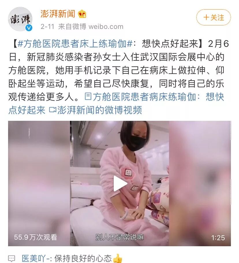 事实上,这已经不是我第一次看到,方舱医院感染病人练瑜伽的新闻了。