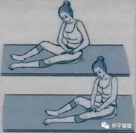 进入:坐立,右腿伸直,脚回勾,弯曲左膝,左脚跟放在右大腿内侧。