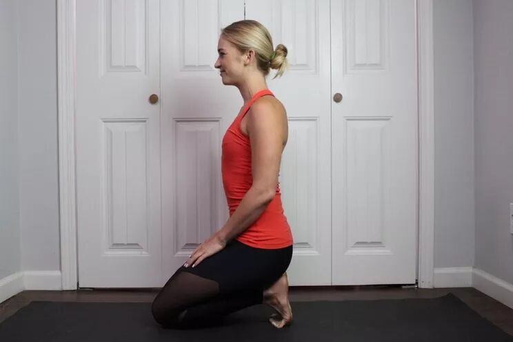 脚前脚脚趾踩地,臀部坐在脚后跟上