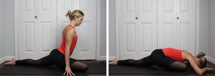 益处:打开髋部,伸展股四头肌和髋部屈肌,缓解腰背部疼痛