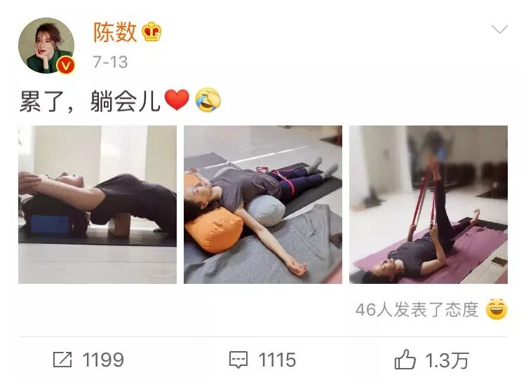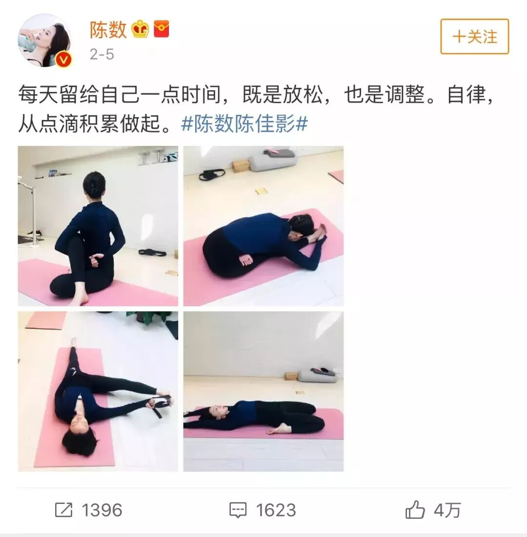 在陈数的微博上,经常可以看到她练瑜伽的日常。
