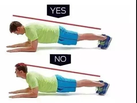 标准的平板式,应以手肘与脚尖撑地,头部保持中立的位置,侧面观,耳、肩、髋、膝、踝在同一条直线上,在练习过程中,保持正常的呼吸频率。