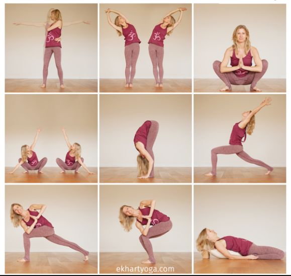 这套序列也很温和,简单的拉伸加上扭转动作,帮助疏通经络,打开身体,让沉睡一晚的身体快速苏醒。