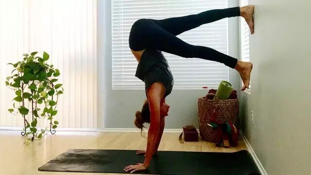 今天我们就来看看墙壁,大多数人用墙壁都是为了用它做一个保险,避免在体式中摔倒。所以墙壁的最大用途是在倒立体式中做一个支持性的辅助,比如手倒立的时候,头倒立的时候用做保险。但是墙壁还有很多其他的用途,比如帮助用来打开身体,协助平衡,协助身体放松等等。而且墙壁非常好找,不用花钱,实在是居家必备之在馆在家练习之良品。