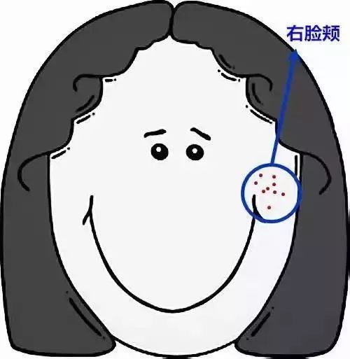 右脸颊痘痘是肺部有炎症的反映。如果你肺火上升、喉咙干燥、痰多咳嗽,留意一下右脸颊痘痘。