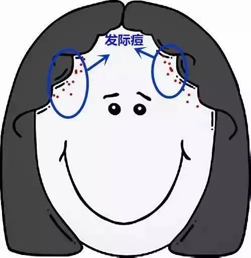 因为卸妆没卸干净,或者清洁时忽略了这个小细节,造成角质太厚,毛孔堵塞,容易在发际或眉间形成细小痘痘。