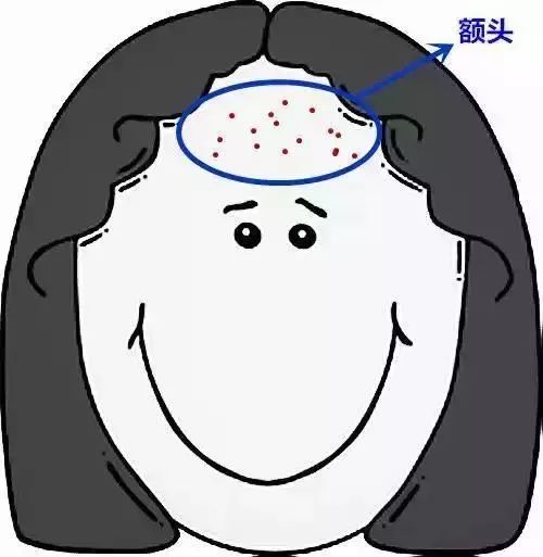 如果你的额头总有大粒痘痘不断,那说明你的肝脏已经积累了过多垃圾,不规律的生活、昼夜颠倒、长时间熬夜都会让肝脏不能在正常时间(夜里10点~12点)工作,垃圾就会积累下来。 前额出现痘斑,是肝脏里含有过多的垃圾所致,必须减少食用含糖分过高的食物,更要避免用太多的酒精。