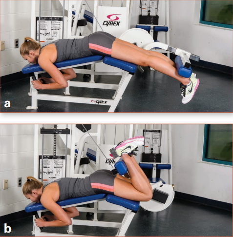 1.面朝下俯卧在垫子上,腿部挡板位于膝盖上方几英寸高的位置,膝盖骨与垫子不接触。