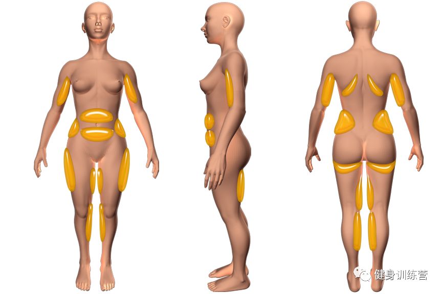 比如说手臂的后侧、背部、肚皮、大腿,这些都是易堆积部位,也是最不容易减的部位。