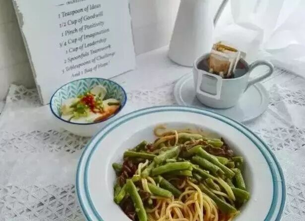 #10:豆角焖意面+凉拌香干+黑咖啡