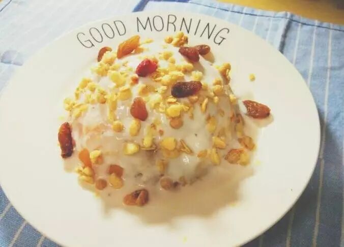 4、淋上酸奶然后加上自己喜欢的水果或者少许坚果就可以吃啦。