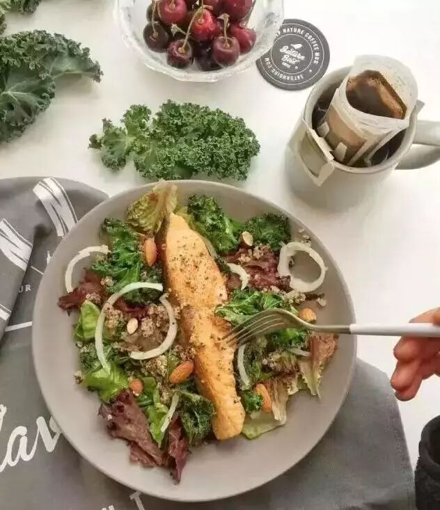 #01:羽衣甘蓝藜麦三文鱼沙拉+黑咖啡