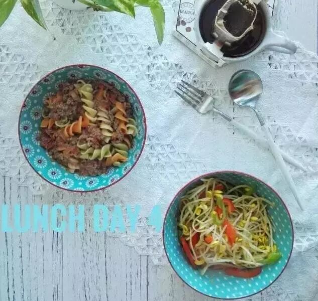 #12:番茄牛肉酱意面+炒豆芽+黑咖啡