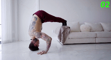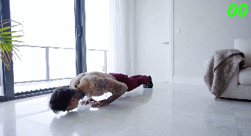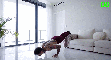也可叫下斜俯卧撑,提高脚的位置,上肢承受了更多的自重,这个变式会更多的刺激到上胸和胸中部。
