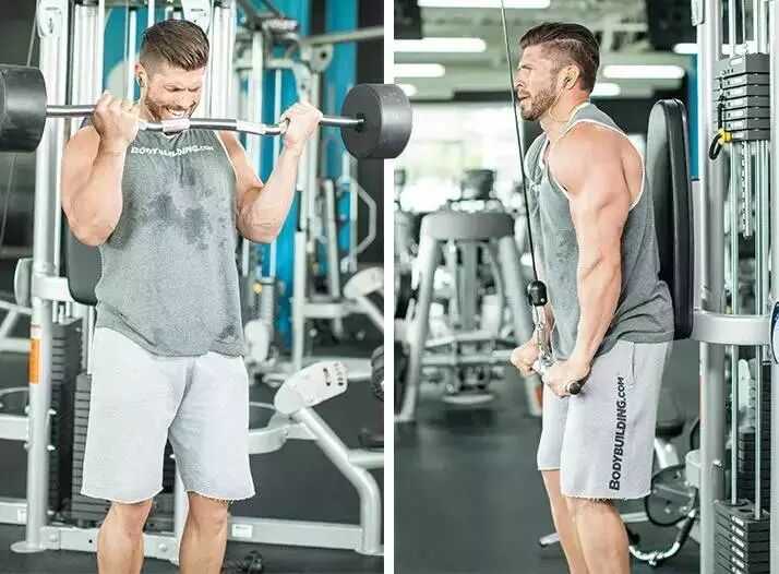 哑铃俯身臂屈伸和绳索弯举