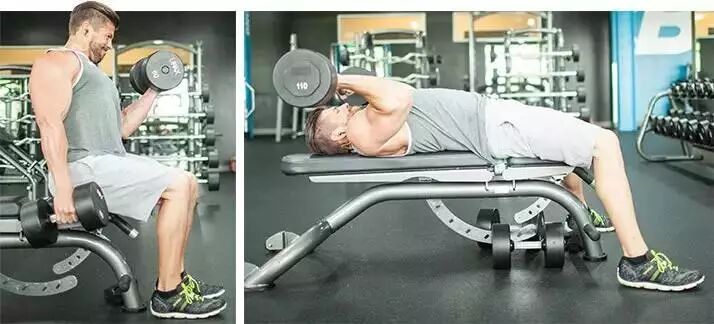 坐姿哑铃弯举和仰卧杠铃臂屈伸