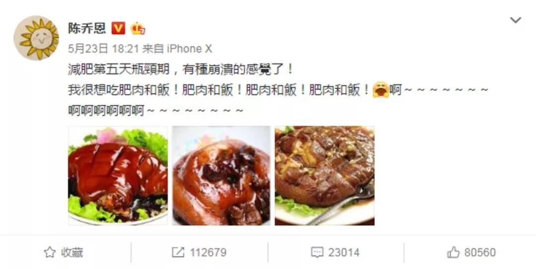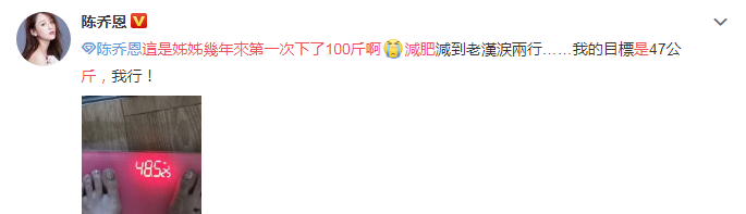 “这是姊姊几年来第一次下了100斤啊,减肥减到老汉泪两行……我的目标是47公斤,我行!”