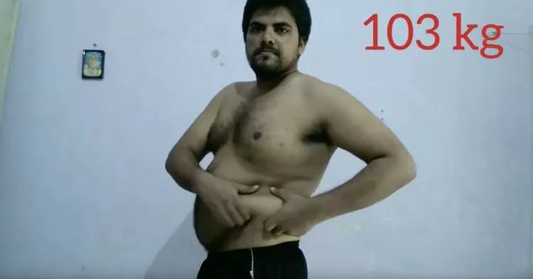 这位大叔叫希曼,来自印度,身材非常的肥胖,个子并不高的他,体重却达到了103kg,看着日益隆起的肚子,和腰间一掐一大把的肥肉;希曼觉得不能再堕落下去了,于是他开始了60天减肥计划。