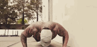 高难度俯卧撑也是手到擒来,比如飞人式俯卧撑