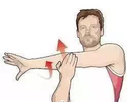 作法:双脚站立与髋同宽,双膝微弯。将左手越过身体,手肘微弯。并以右手固定于左手肘处,然后将左手臂向身体靠,直到感觉到肩膀的肌肉紧绷。换边再重复相同动作。