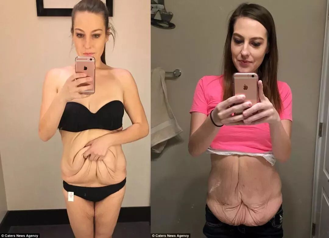 LyndseyHoover选择的减肥方法,体重掉得太快 原理类似于快速节食瘦身 在她的肚子上留下了很多松弛的赘肉,看起来像老年人的皮肤