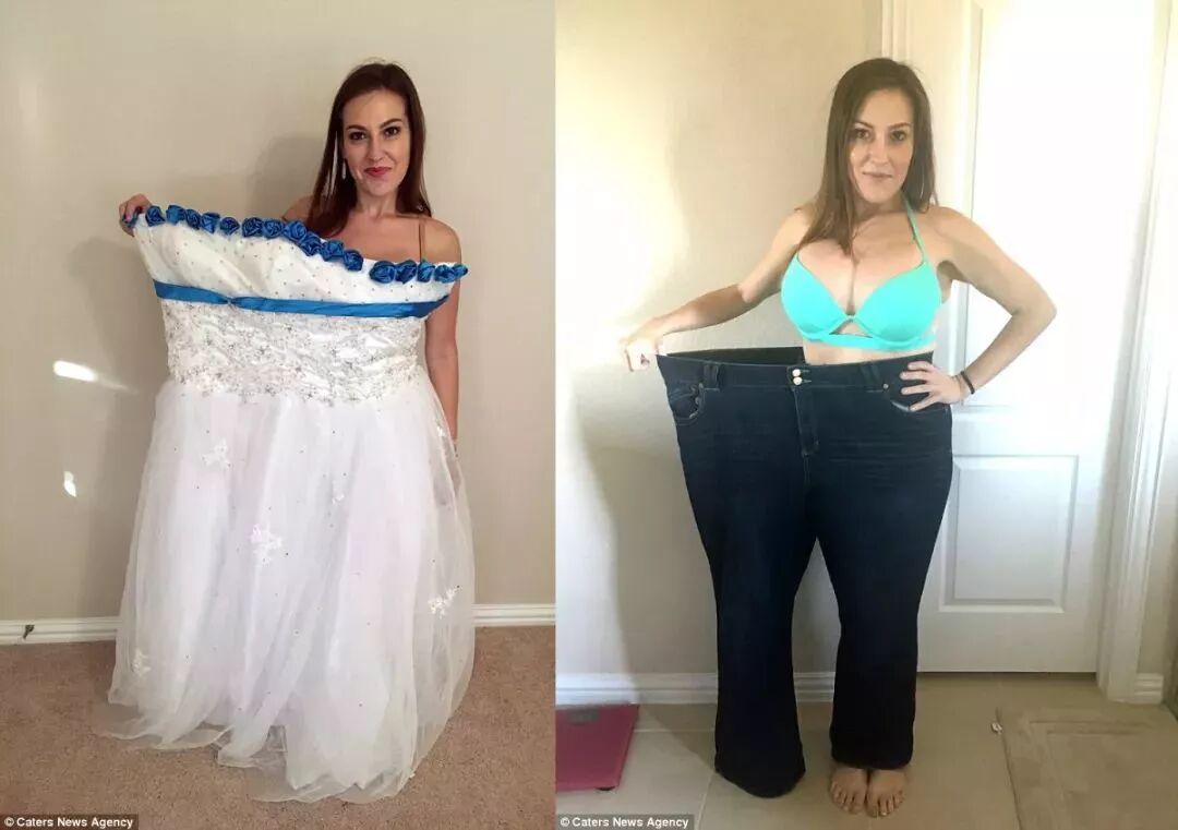 Lyndsey Hoover傲娇得拿着以前的衣服跟现在的身材做比较