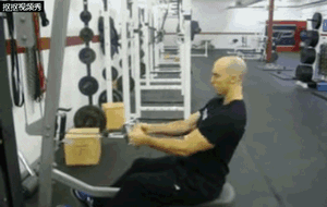 头部前倾的动作经常会出现在坐姿划船中,这个动作不仅对背部锻炼收效甚微,并且会加重对颈椎的压力,对脆弱的颈椎稳定性有着很大的破坏,一定要记住在起始姿势到拉背姿势都尽量保持身体稳定性,宁可轻,不可假,变形的动作只会伤身。