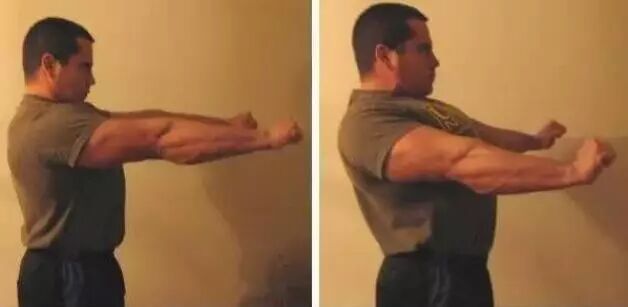 1,背阔肌至臂部方向的肌肉尽量舒展,双臂尽量放松,为下面的动作做好准备。