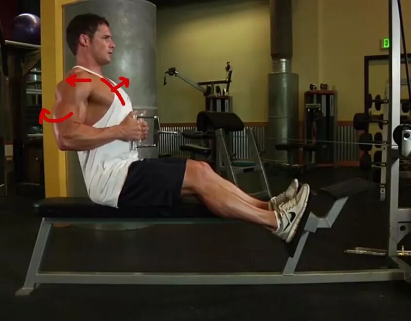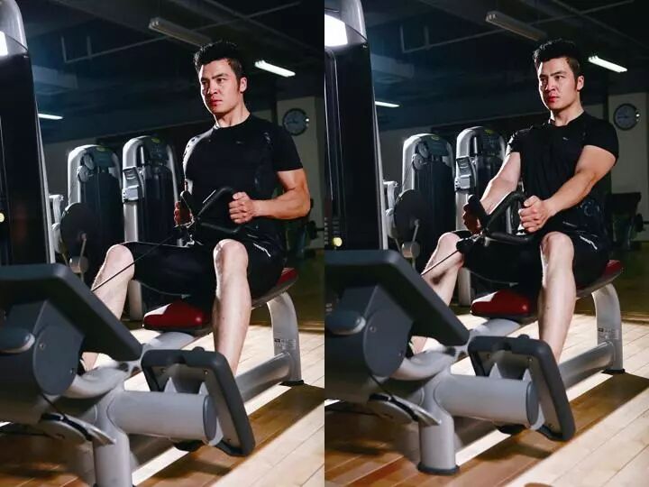 顾名思义,划船这个动作就是从双桨划船的动作中演变而来,大家可以有空看看赛艇比赛,与划船动作非常相似,赛艇运动员们的背部肌肉往往是异常发达的,倒三角的轮廓在背面看起来非常明显,这就是划船训练带来的体型变化。纵观整个坐姿划船的带动肌群分布,可以说几乎整个背部都有做功,背阔肌,大圆肌小圆肌,斜方肌肉,竖脊肌...等等都参与其中,而固定器械划船这个动作却只有臀部脚步两个支点,整个上半身相对来说活动都比较自如,这也意味着这个动作更难把握,很多朋友经过几年的健身都能做出看似标准的划船,但是训练效果却常常不尽人意,练背结果练到了胳膊或是练到了协防肌上,究其根本原因还是没有做到念动一致,负重走力的部位出了偏差,下面我们就逐步讲解一下坐姿划船的动作,来帮助大家了解这个动作的过程。