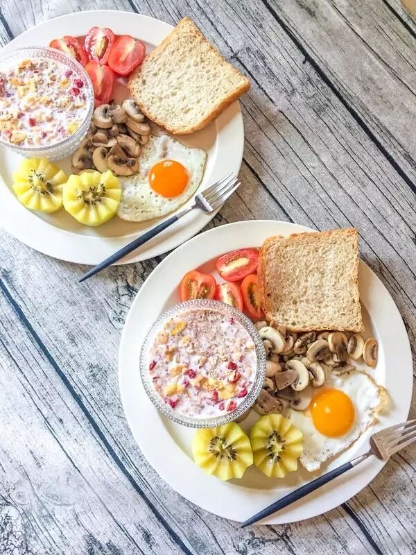 隔夜燕麦+口蘑+圣女果+鸡蛋+全麦吐司