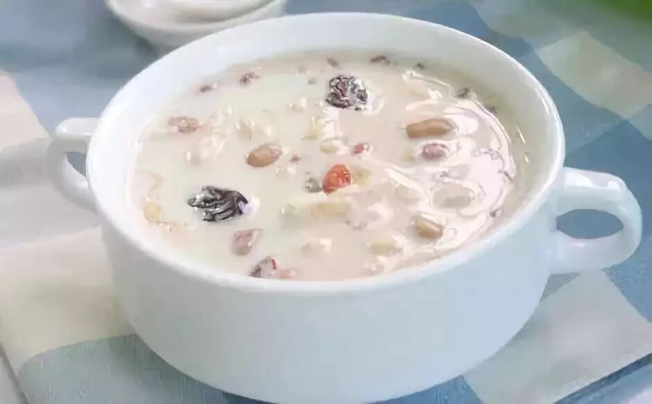 早餐牛奶燕麦粥一碗,肉松1勺,桂圆5个