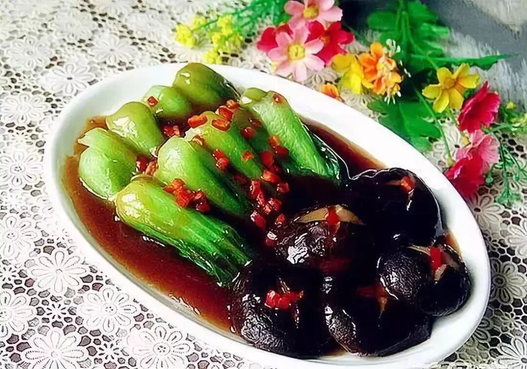 中餐豆皮炒青椒,黄瓜拌鸡丝,香菇炒油菜
