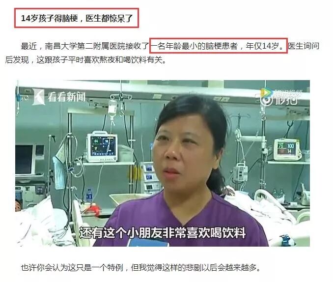 14岁的孩子爱喝饮料,引发脑梗