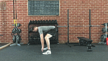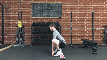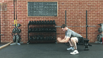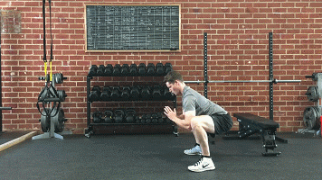 慢慢让身体适应这个节奏,目标是可以做2-3组,每组5-6次,作为动态热身的一部分。当你能够达到底部后,像下图一样,保持上半身直立起,进行3组x5-6次。