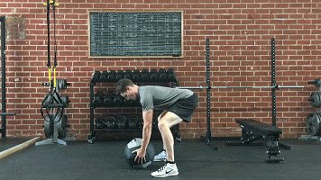 然后你可以在双手举过头顶利用药球在增加负重,这个方法能够帮助你激活核心,让身体本能的去平衡重量,能够全方位的改善胸椎的灵活性,和控制力。随着举起药球的同时,你会想要屏住呼吸,但一定要蹲起后呼气,然后在重复这个过程。