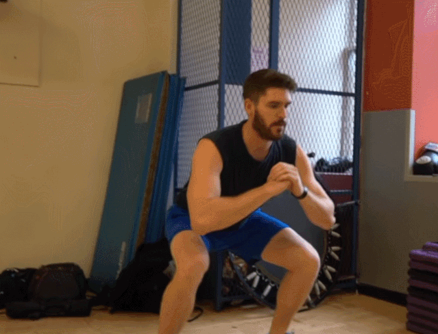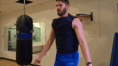 首先来二十分钟热身运动:先是快速的跳绳,然后来一组基础的拳击动作,再就是甩战绳,最后来几组波比跳,简单的二十分钟训练,埃里克就累得气喘吁吁了。