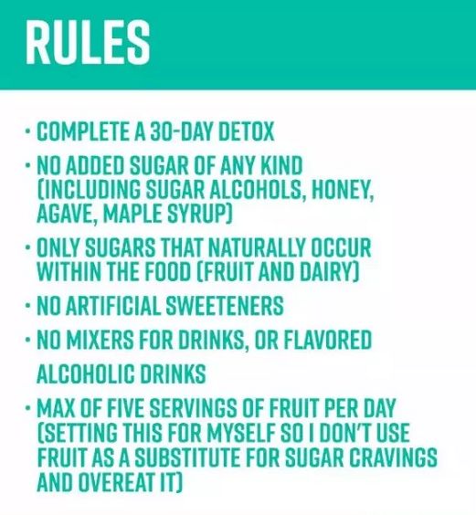 - 不吃任何添加糖(包括:糖醇,蜂蜜,龙舌兰糖浆,枫糖浆)