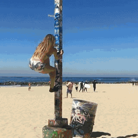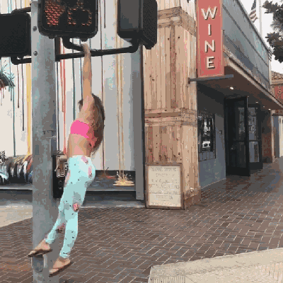 让她丝毫不输给别人,在街头轻松来个人体旗帜