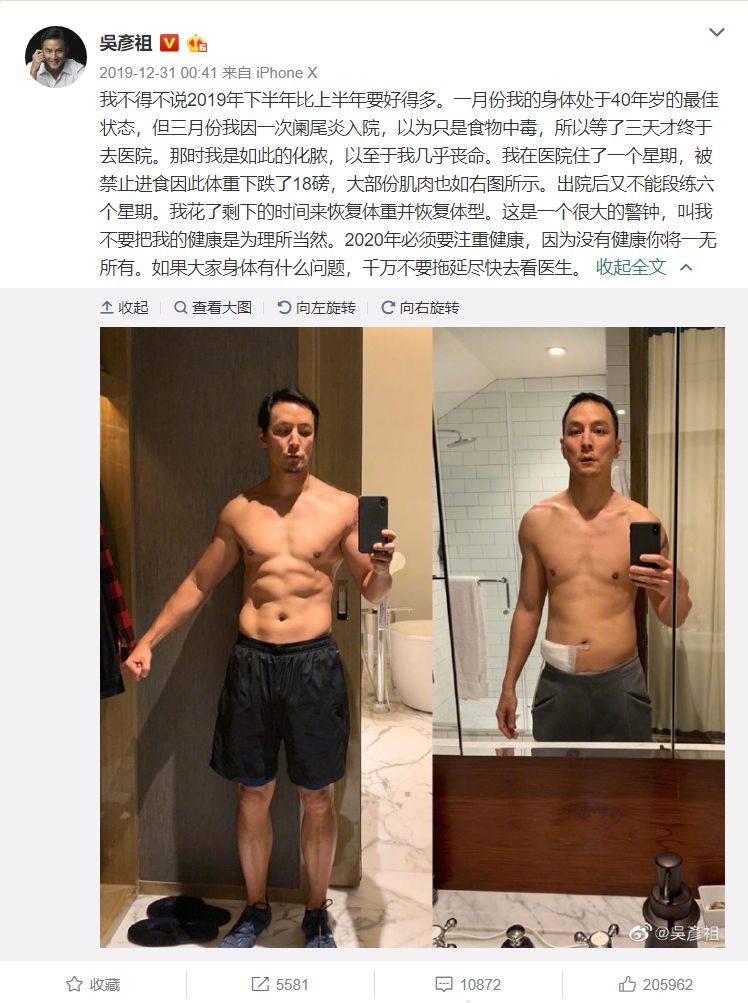 在感叹健康的脆弱时,吴彦祖还晒了一张
