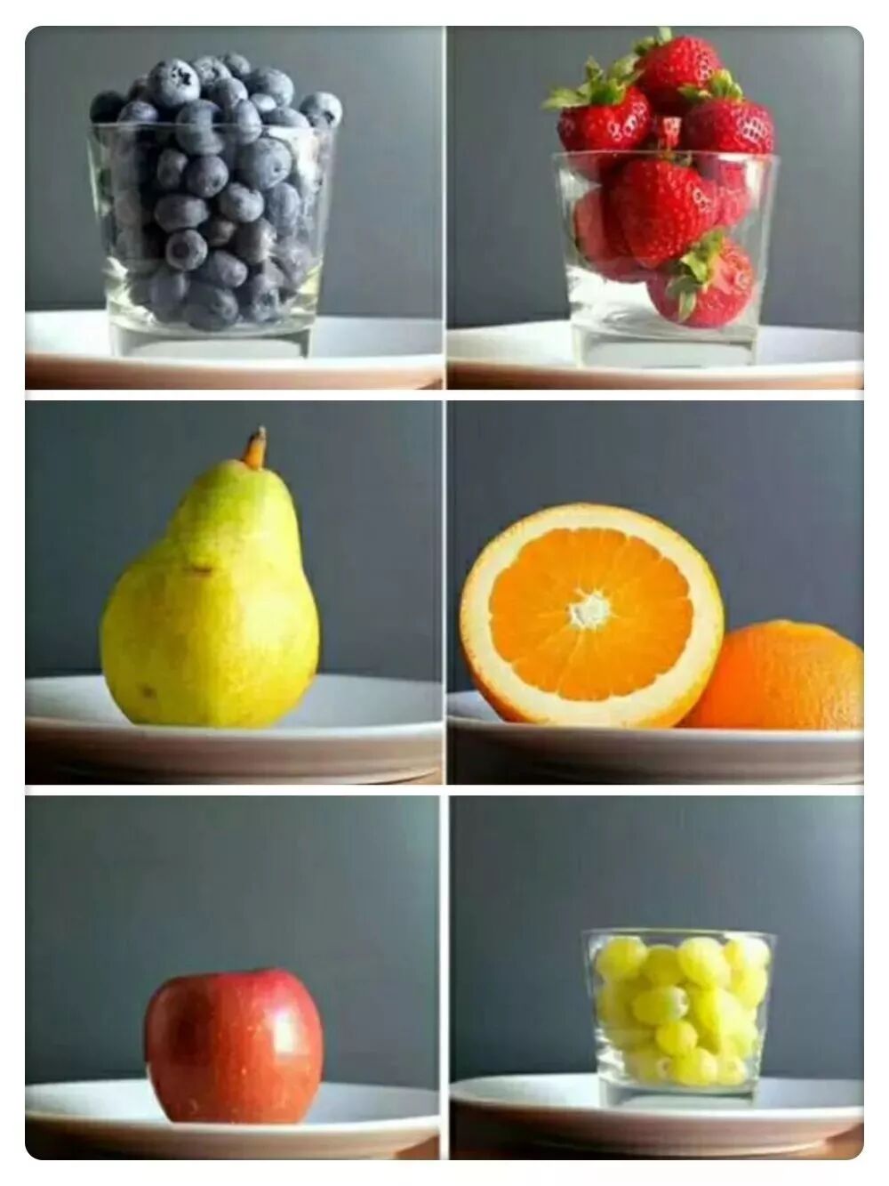 一般将水果的量控制在一天200-350g为宜,也就是以下图片中的水果,每个格子中的水果代表一份,每天可以吃一到两份。