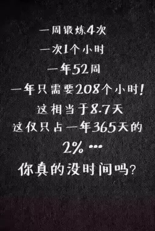 不要说自己太忙,每天健身一小时,一年只需要拿出8天多的时间放在健身上,你真的没时间吗?