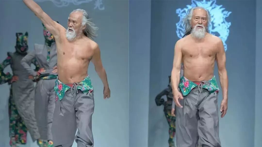赤裸上身走起T台,气场甚至压过年轻人,被大家称为史上最帅大爷。
