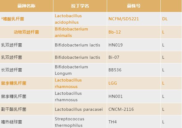 可用于婴幼儿配方食品中的菌种名单