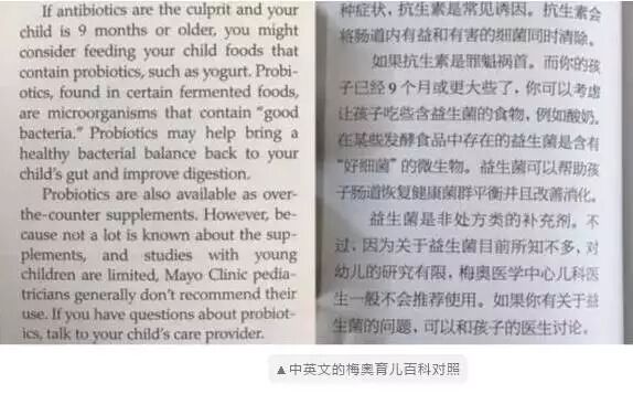 在新出版的《梅奥育儿百科》里(梅奥经常在美国最佳医院评比中排名第一),谈到益生菌时是这么说的:“因为关于益生菌目前所知不多,对于幼儿的研究有限,梅奥医学中心儿科医生一般不会推荐使用。”