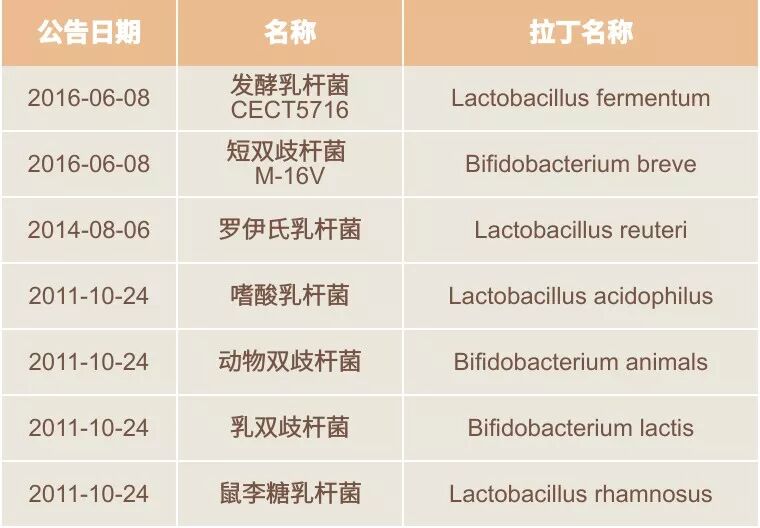 菌种的名字都有点难记,具体哪些被允许添加到婴幼儿食品里,瓜妈特地制作了一张表格,可以收藏,下次给宝宝选益生菌时,对照着看就行啦。