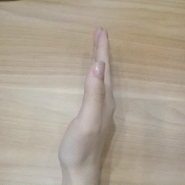 开始时手掌完全伸直。然后将拇指朝向手掌弯曲,拉伸拇指去接触小指根部。如果你够不到小指,也不用担心,尽可能的拉伸拇指即可。保持此姿势1至2秒钟,然后将拇指恢复至起始位置。重复10次,双手交替进行。