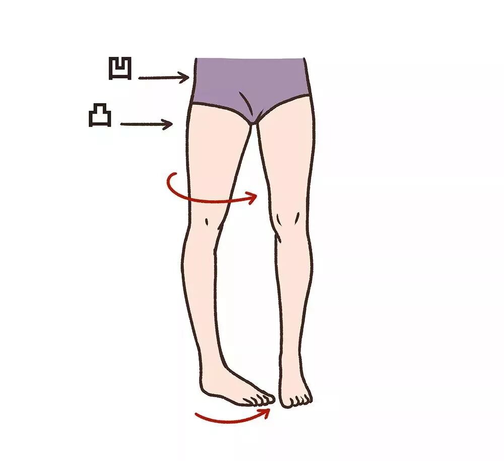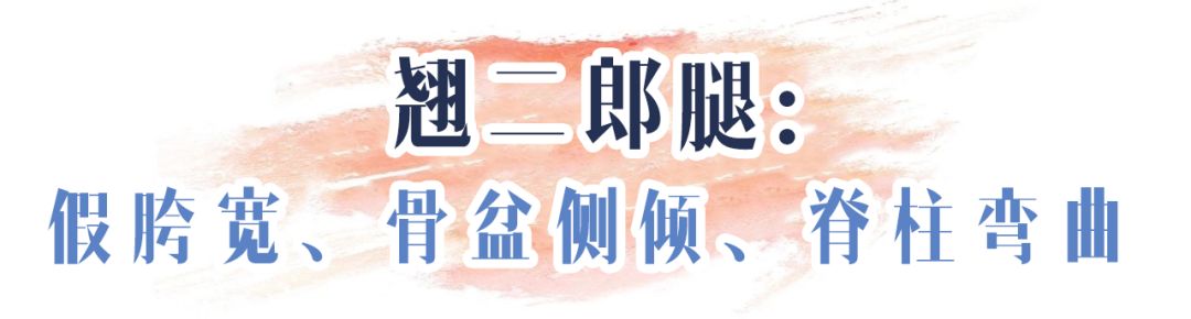 刚刚说到的假胯宽,形成原因是通过翘二郎腿让股骨头内旋,而大腿根则往外凸出,久而久之,假胯宽就出来了。