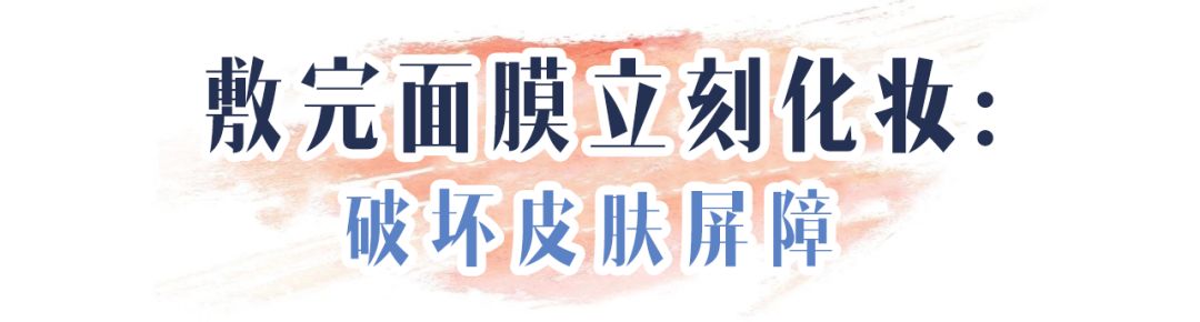 但是!刚敷完面膜时皮肤对外界物质是毫无抵抗力的,立马上妆会加速彩妆对皮肤的渗透。从而让毛孔堵塞,甚至破坏肌肤屏障。
