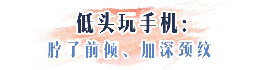 你们可能不知道,低头时颈部所受的压力是平时的3倍,经常低头除了会导致脖子前倾,还会加深颈皱,分分钟显老十岁!