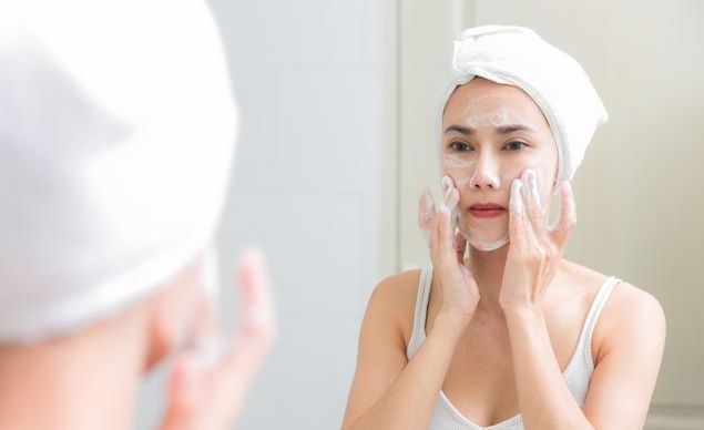 1. 温水清洁,使用牛奶洗面奶清洁皮肤,同时用手按摩脸部,温水清洁后,再次使用啫喱洗面奶进行二次深层清洁;